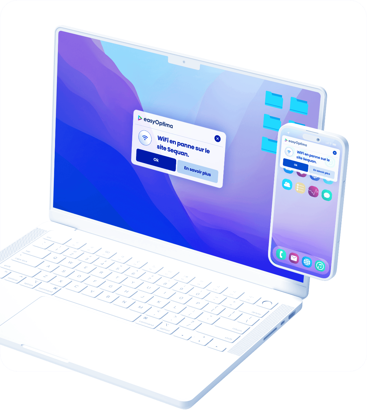 easyOptima garantit une communication instantanée et ciblée, évitant à vos collaborateurs d’être submergés par les messages IT. Vous avez l’assurance que les messages importants sont lus et pris en compte, ce qui améliore la circulation de l’information au sein de l’entreprise.